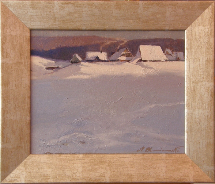Zatem to artysta, który zaczerpnął z wielu źródeł czystą i ożywczą wodę życia sztuki. Artysta, który ważne i piękne wzory wykorzystuje (może one w nim tkwią od zawsze?!), by jak po stopniach wspiąć się na jeszcze wyższą skałę. Na przykład w jego pejzażach zimowych widzimy nieograniczoną niemal paletę bieli – śnieg („chemicznie” bezbarwny) pod wpływem postrzeganego światła i światłocieni może mieć róż mroźnego poranka czy zachodu słońca, może nieść spokój błękitów i szarości na ponowie, albo i blade odsłony turkusów, przejęte od barw w lustrach nieboskłonu. Lecz ta obszerna gama przypisana bieli nie buduje obrazów Chomiczewskiego w całości, jak widzimy to głównie w twórczości Mistrza Fałata. Chomiczewski dodaje owo „swoje” – własne widzenie bieli okrywającej pejzaż. On jakby dodatkowo graduje sfery cieni – to właśnie cienie kształtują przestrzeń powleczoną – nie wyłącznie bielą - śnieżnej zimy.