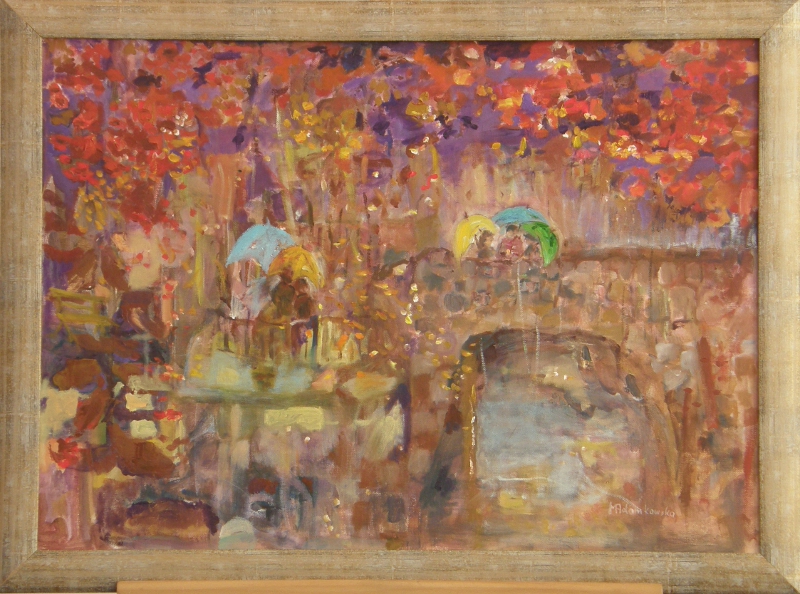 Oczywiście każdy artysta może być postrzegany jako mistrz wybranego tematu. Jak goszczący tu niedawno Stanisław Chomiczewski jest niekwestionowanym mistrzem w malowaniu koni (pewnie i pejzaż jego koniom dorównuje, a mówimy o klasie europejskiej tego malarstwa), tak i w tym przypadku możemy określić pewien obszar tematyczny – Małgorzata Adamkowska jakby „machinalnie” również lubi pejzaż, choć jest w jej twórczości sporo prób portretowych, wiele scen baśniowych. I oczywiście kompozycji abstrakcyjnych. Nie, nie – to nie wszystkoizm, to tematyczne dominanty.