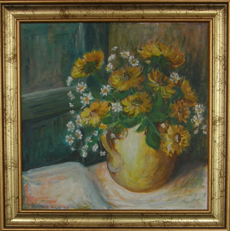Bukiety zawsze przyciągają oko, koją. Malowane przez Dorotę Silniewicz wydają się świeżo przyniesione z ogrodu, z wiejskiej rabatki; mają coś z poematu „Kwiaty polskie” Juliana Tuwima, są odbiciem słów:
