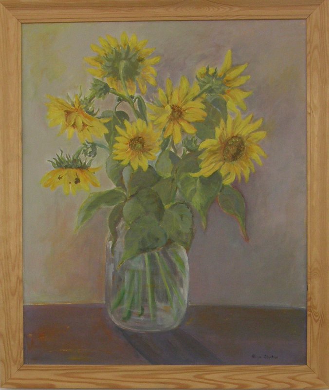 z powodzeniem prezentuje - również - portrety dzieci; w tym monochromatyczne. Właściwie na pierwszy rzut oka mogłaby to być czarno-biała fotografia. Kontury realistycznie malowanych twarzy dzieci, pełnych wdzięku, i ich naturalnych póz, powstały dzięki umiejętnemu wykorzystania światła, walorów światłocieni. Są tu i koty - „twarz” jednego jest malowana tak, by była „jak żywa”, drugi kot, w całej okazałości, został już potraktowany niemal ekspresyjnie, z dozą smagnięć pędzla postimpresjonisty, choć w ograniczonej gamie odcieni popiołu i bieli. Portrety dorosłych z kolei pełne są refleksyjności, oczy „bohaterów” tych obrazów określają stan ich emocji, przybliżają i nawet określają ich nastroje. Są i pejzaże: pole dojrzewającej kukurydzy chyba (?) na pierwszym planie, także pejzaż z nagimi gałęziami drzew, budzącymi nostalgiczną refleksję, ale jeszcze nie grozę. Są i kwiaty - łąkowe, w swoim naturalnym otoczeniu; dynamiczne - pewnie dotyka ich podmuch wiatru. Zatem to malarstwo sięgające po różne odcienie technik, ale i przedstawianych emocji.