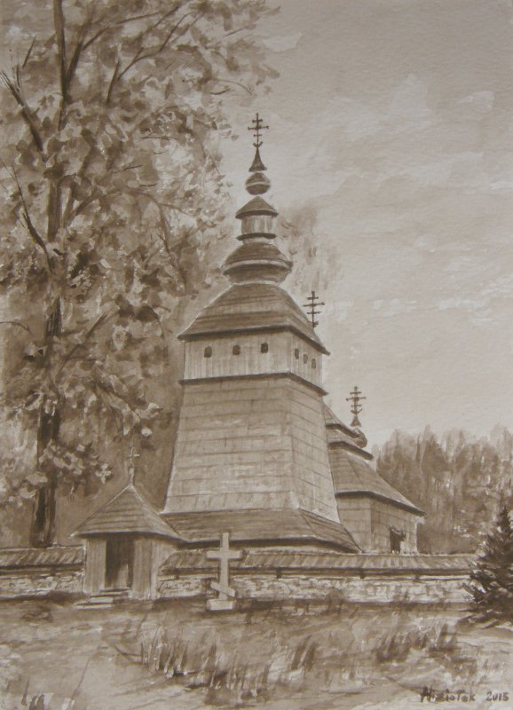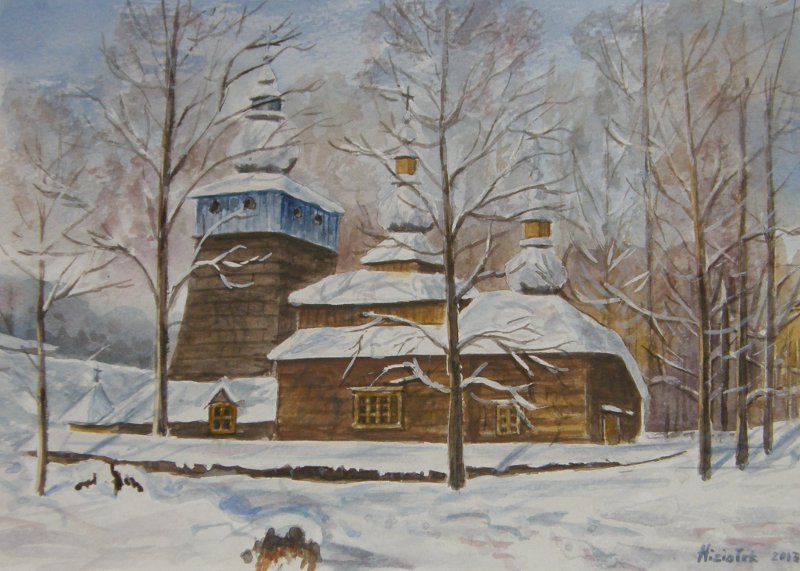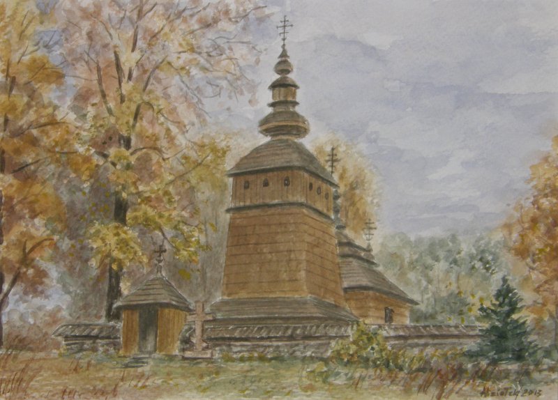 Na wystawie w Saloniku Artystycznym Krośnieńskiej Biblioteki Publicznej zaprezentowane m.in. akwarele z cyklu „Cerkwie południowo-wschodniej Polski”.